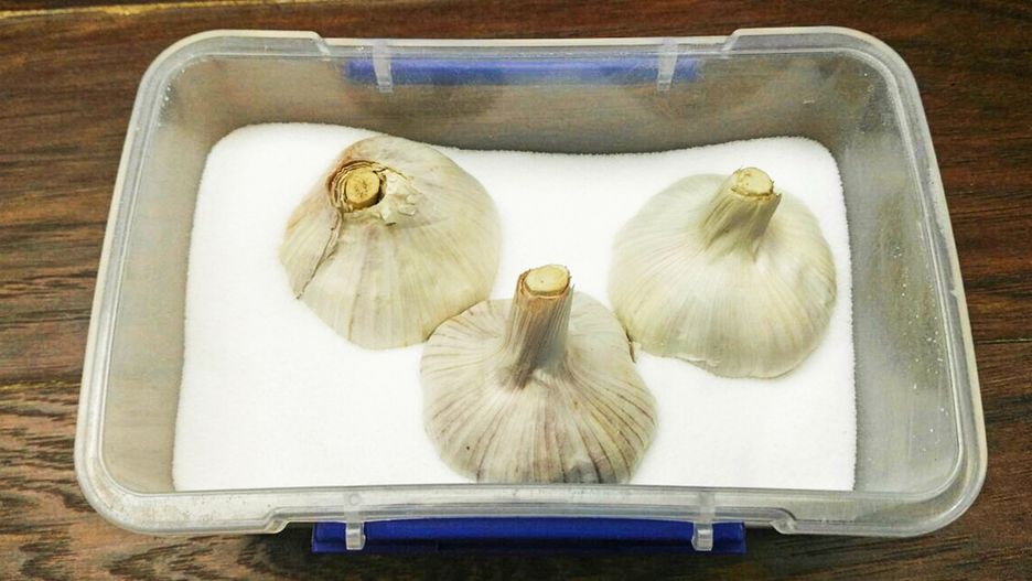 Zachowaj smak czosnku umieszczając go w pudełku z solą. Dzięki temu nie stanie się on suchy i niesmaczny.