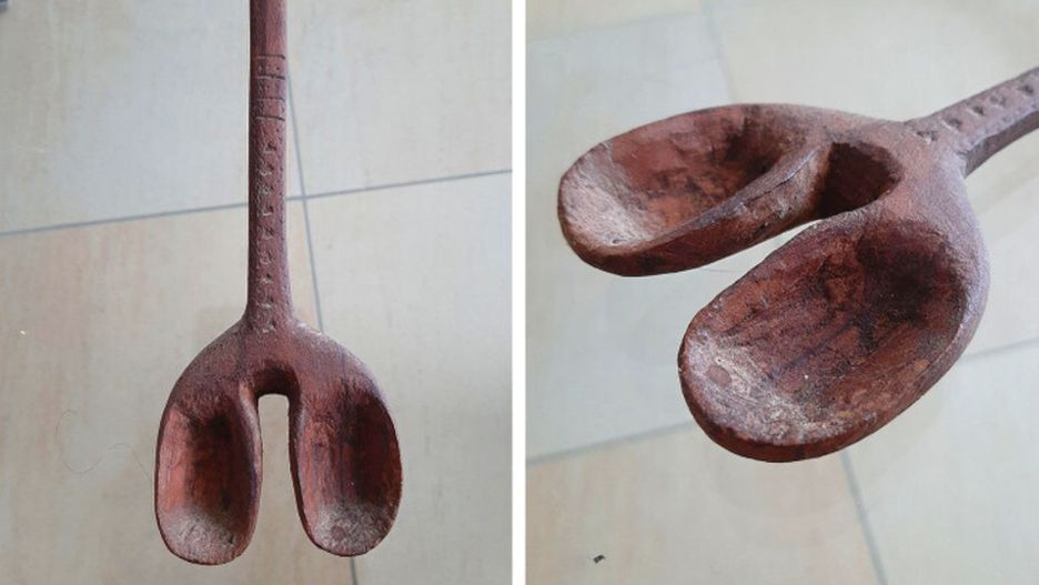 Odpowiedź. To prawdopodobnie podwójna łyżka Yacouba - symbol gościnności w tradycyjnej sztuce afrykańskiej. Symbolizuje ona dwa bardzo różne, przeciwstawne światy.