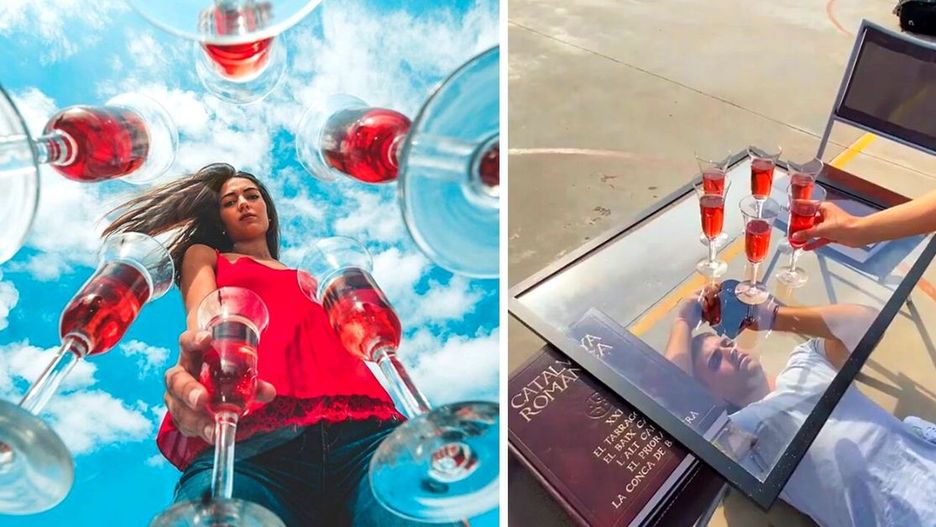 8. Kieliszki ustawione na szklanym stoliku wyglądają jakby unosiły się w powietrzu