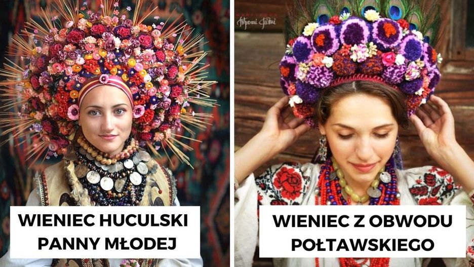 17 kobiet w barwnych ukraińskich strojach ludowych. Wianki i chusty to przysłowiowe wisienki na torcie