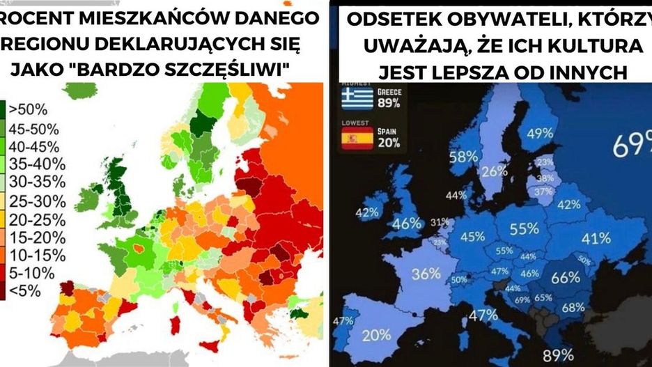 #1 Odsetek mieszkańców danego regionu Europy deklarujących się jako "bardzo szczęśliwi"