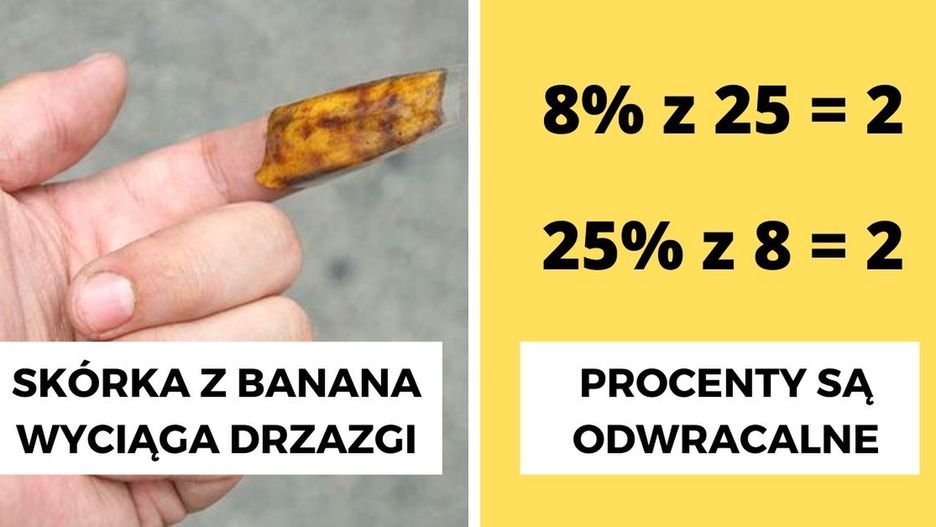 Jeśli masz drzazgę pod powierzchnią skóry, owiń ją skórką od banana. Mokrą stroną na skórze. Nie wiem jak, ale to działa. Bananowe voodoo.
