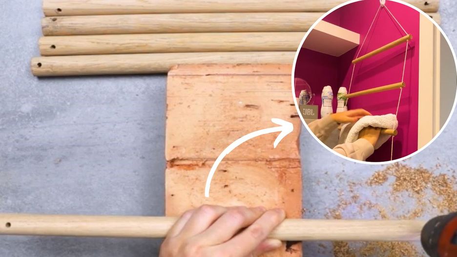 Akcesoria DIY do łazienki — drewniana drabinka na ręczniki
