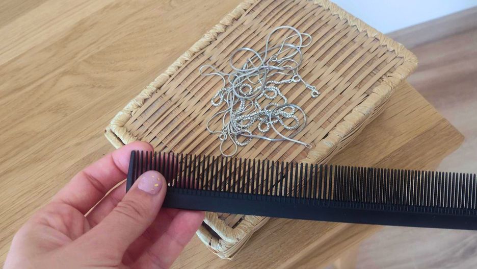 Nie masz możliwości zakupu szkatułki? To nie problem. Tiktokerka publikująca pod pseudonimem declutterpl, udostępniła filmik, na którym pokazuje, jak przechowywać naszyjniki, żeby te się nie plątały. Wystarczy, że zaopatrzysz się w dwie rzeczy, z czego jedną najprawdopodobniej masz już w domu. Potrzebujesz grzebienia i woreczka strunowego. Kupisz je w dużych marketach. Jak to zrobić? Łańcuszki umieść pomiędzy kolcami grzebienia. Pamiętaj, aby zostawić pomiędzy nimi niewielki odstęp. Następnie, sięgnij po woreczek strunowy i przybliż go do grzebienia. Zwisającą część biżuterii umieść w woreczku. Następnie, zaciśnij zatrzaski, a grzebień zakręć wokół woreczka. To sprytny patent na przechowywanie biżuterii, który warto zastosować nie tylko w domu, ale też przygotują się do wyjazdu. Zaoszczędzisz sporo miejsca i unikniesz splątanych łańcuszków.