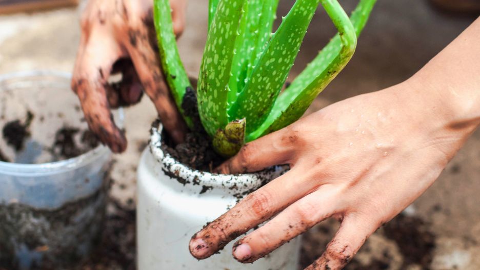 Aloes jest sukulentem, należącym do rodziny roślin kaktusowatych. Sukulenty nie przepadają za nadmiarem wody i uwielbiają słońce. Raz w roku powinno się aloes przesadzać. Zwróć uwagę na to, w jakiej ziemi go umieścisz. Wybierz mieszankę do kaktusów. Możesz dosypać do niej nieco perlitu lub kamieni, które ograniczą ryzyko przelania. Podlewaj go nie częściej niż raz w tygodniu, a w okresie jesienno-zimowym raz na dwa tygodnie.