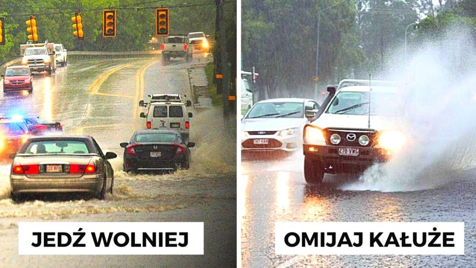 #8 Zwolnij, jeśli widzisz przed sobą większą kałużę. Może być dużo głębsza niż Ci się wydaje