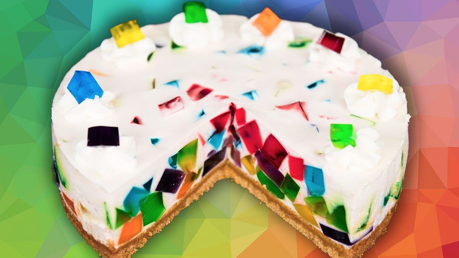 Ciasto z kolorowymi galaretkami wygląda naprawdę rewelacyjnie!