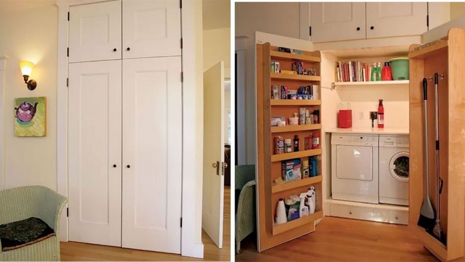 Nie zawsze mamy miejsce na pralkę i suszarkę w łazience. Ktoś wpadł na pomysł, że taką mini pralnię można ukryć w szafie stojącej w salonie!