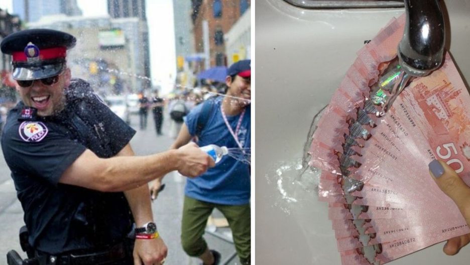 #2 Służby mundurowe w Kanadzie mają luźniejsze podejście do służby niż w większości krajów. Tutaj oblanie funkcjonariusza w trakcie radosnego festiwalu nie jest traktowane jako "napaść na mundurowego"