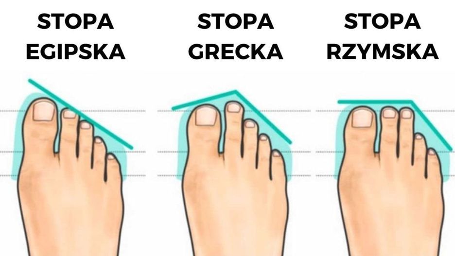 Ludzka stopa zbudowana jest aż z 26 kości oraz 33 stawów. Jeśli weźmiemy pod uwagę długość palców, to możemy wyróżnić 3 najczęściej występujące kształty stóp: