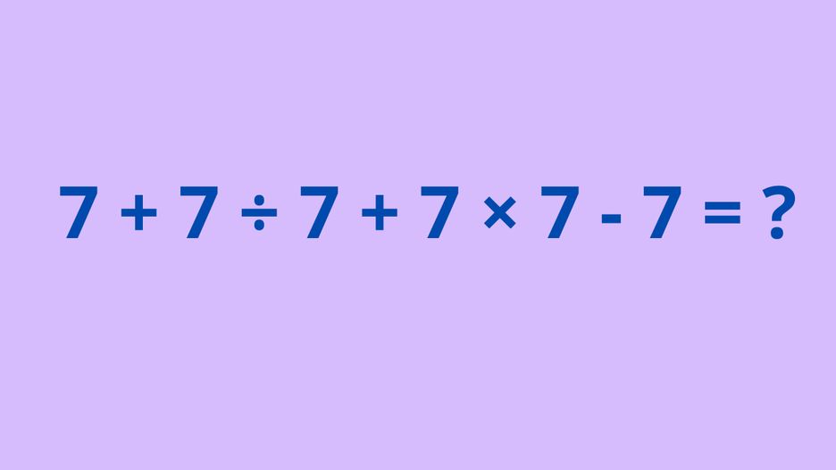 Tej dziedziny uczył się każdy, a dla wielu był to prawdziwy koszmar. Jak się okazuje, w niektórych przypadkach co osoba — to zupełnie inne rozwiązanie. Jednak w matematyce tylko jedna odpowiedź jest prawidłowa. Czy jesteś pewien, że zdołasz ją znaleźć? Popatrz na równanie 7+7÷7+7×7-7 i podaj odpowiedź.