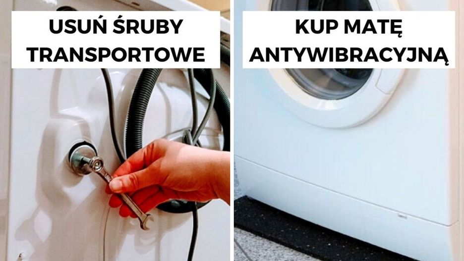 Jeżeli nowa pralka skacze po płytkach, to niekoniecznie znak, że jest wadliwa. Najprawdopodobniej nie wyjąłeś śrub transportowych, które znajdują się z tyłu sprzętu. Zabezpieczają one bęben przed ewentualnym uszkodzeniem podczas transportu. Śruby koniecznie zachowaj. Należy je znowu założyć, w momencie przewożenia pralki w inne miejsce.