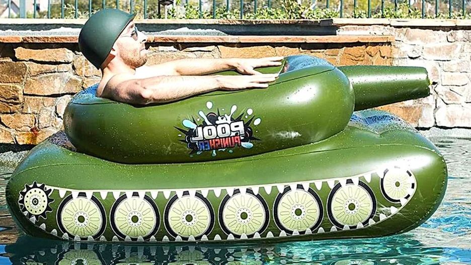 Dmuchane czołgi z armatką wodną na basenowe "bitwy morskie"! Zabawka nie tylko dla dzieci