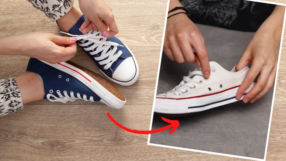 Jeśli masz wąską stopę i chcesz, aby trampki były mniej szerokie, ściśnij je w ten sposób, a obuwie będzie leżało idealnie.