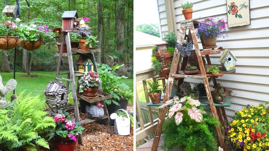 Większość ludzi po prostu wywaliłaby je na śmietnik, ale są też tacy, którzy zamiast to zrobić, uruchomili swoją wyobraźnię i przekształcili swoje stare drabiny ogrodowe w miejsce uginające się od kwiatów.