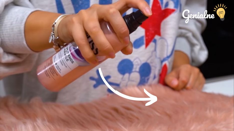 Cały proces jest bardzo prosty. Najpierw spryskaj całą powierzchnię dywanu odżywką do włosów w sprayu.