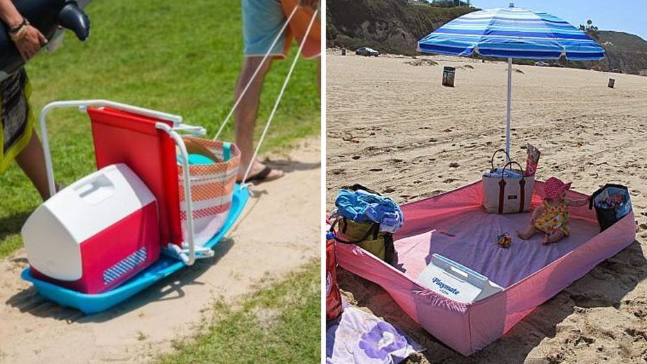 #8 Dziecko na plaży kojarzy się z mnóstwem dodatkowych rzeczy do zabrania. Ale po co nosić, skoro można ciągnąć?