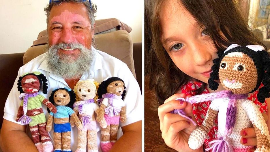 Brazylijski dziadek robi na szydełku lalki, które wyglądają jak dzieci cierpiące na bielactwo