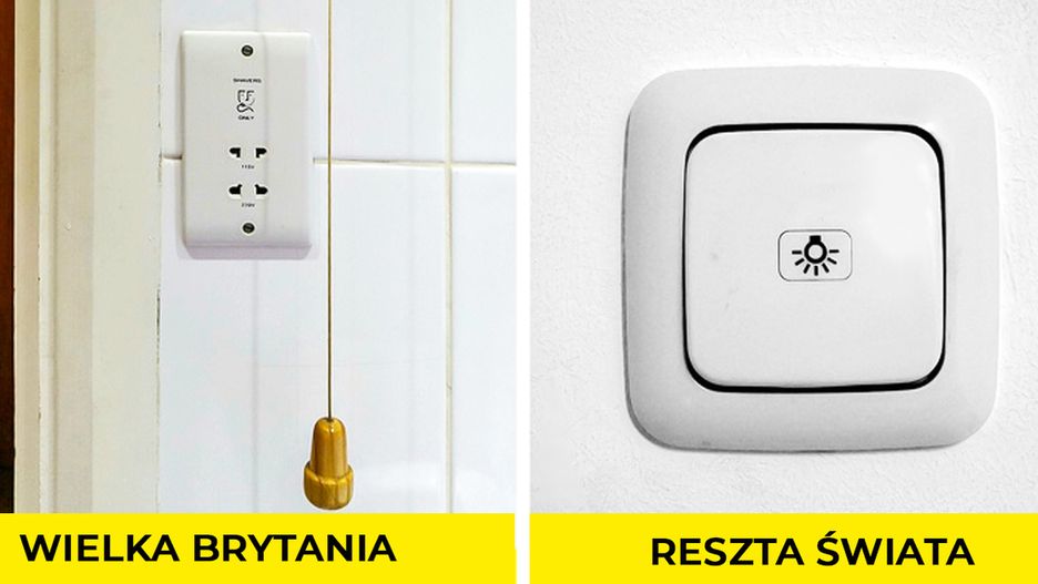 Łazienki w starych brytyjskich domach mają włączniki światła uruchamiany za pomocą sznurka. Są one stworzone w ten sposób ze względu na dużą wilgotność w mieszkaniach. Standardowe włączniki światła nie były używane w łazienkach, ponieważ mieszkańcy obawiali się, że może grozić im porażenie prądem.