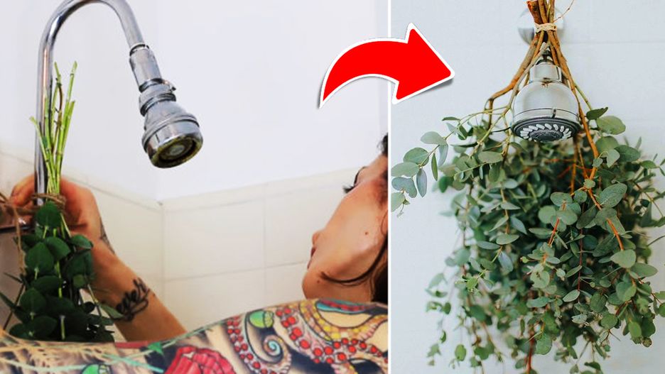 Przy problemach z katarem i zapaleniem zatok warto skorzystać z tego prostego i niezbyt kosztownego triku i wskoczyć pod prysznic gdzie znajduje się eukaliptus. Wystarczy przewiązać kilka gałązek zwykłą gumką recepturką lub kawałkiem sznurka.