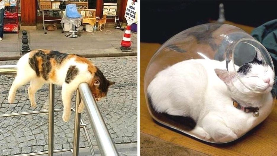 Koty są nieprzewidywalne i nikt nie jest w stanie rozszyfrować ich skłonnej do lenistwa natury. ;) Co ważniejsze, zwierzęta te są mistrzami w wybieraniu niekonwencjonalnych miejsc do spania. Dla nich wyjątkowo wygodna może być patelnia czy rura wydechowa w samochodzie. ;)
