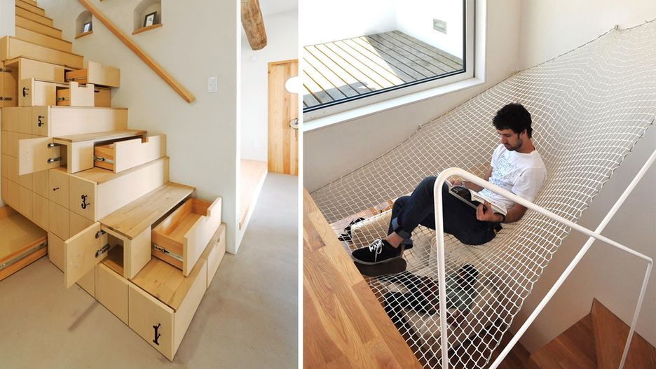 #4 Co powiesz na wygodny hamak w mieszkaniu? Na takiej siatce przy schodach możesz odpocząć i poczytać książkę