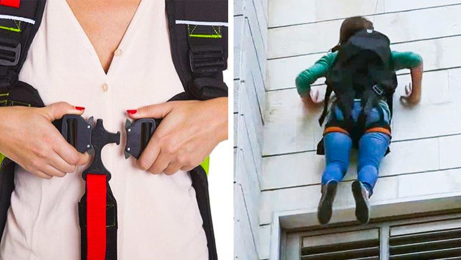 Skysaver to plecak który sprawia, że niemożliwe staje się możliwe. W razie pożaru umożliwia on bezpieczne zejście po ścianie budynku.