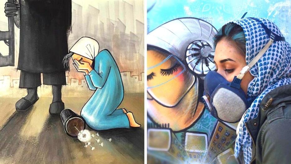 21 przejmujących grafik i murali wykonanych przez afgańską artystkę. Widnieje na nich kobieta bez ust