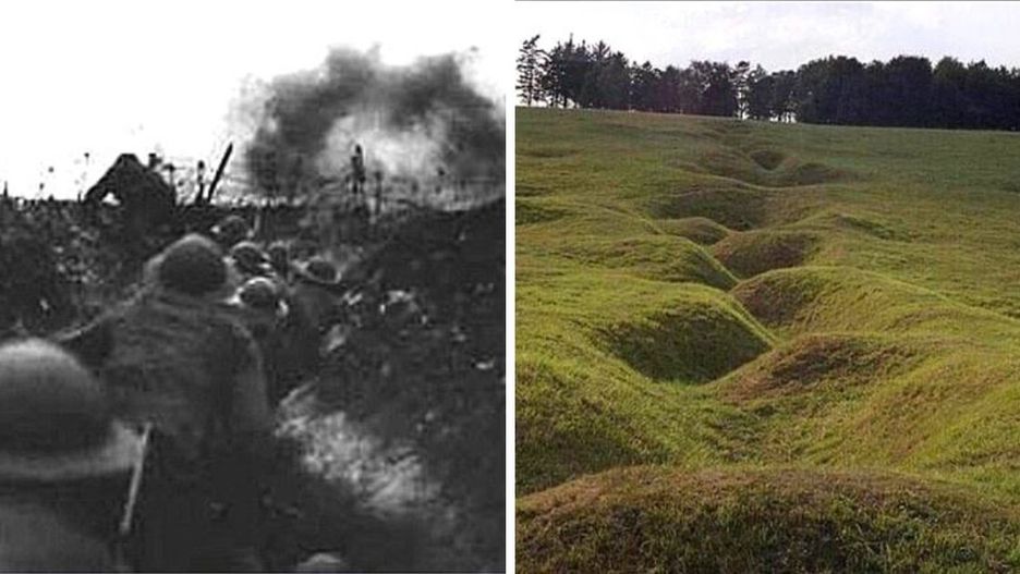 #4 Zdjęcie historyczne z I wojny światowej i to samo miejsce obecnie po 104 latach