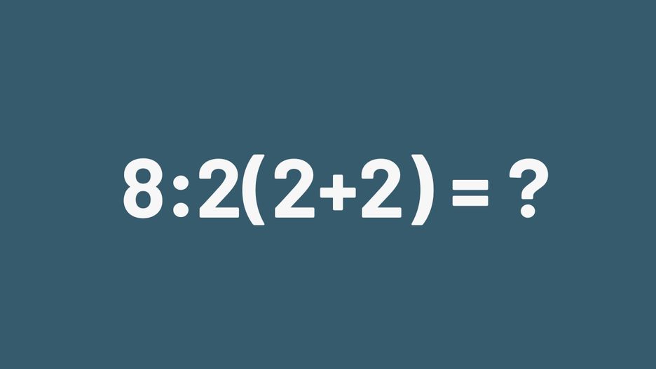 Właśnie na Twitterze toczy się batalia o to, jak poprawnie rozwiązać równanie 8:2(2+2). Tęgie głowy podają sposoby na jego poprawne rozwikłanie. Jedni uważają, że pierwszeństwo tutaj mają tzw. nawiasy, których suma daje 4. Następnie ten wynik należy pomnożyć przez 2, co daje 8. Na koniec pozostaje wykonać dzielenie 8:8, co równa się 1.