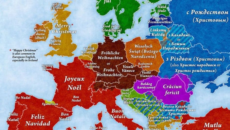 Jak Europejczycy mówią "Wesołych Świąt"? Mapa, która ukazuje różnorodność świątecznych życzeń!