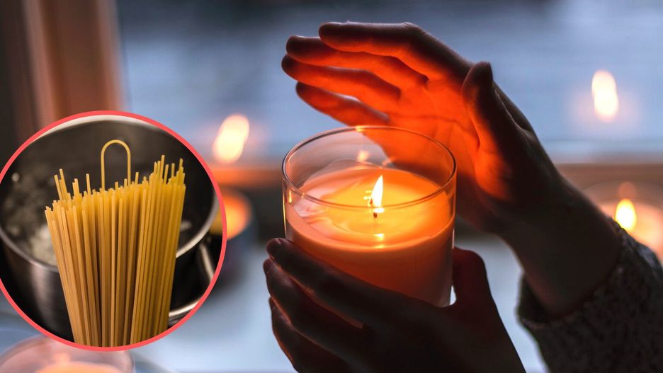 Najpierw udaj się do kuchni i z szafki wyjmij makaron do spaghetti. Podpal jedną nitkę i tym sposobem zaświeć knot świecy. Makaron jest na tyle długi, że spokojnie sięgniesz nim nawet do najmniejszego knota.