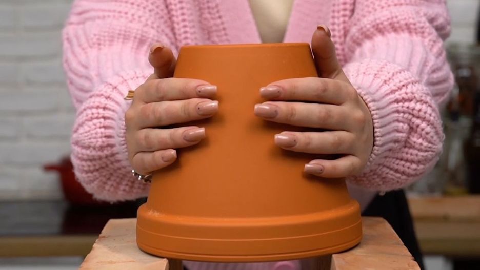 Krok 3 Pod donicę wstaw wysoką świecę lub kilka mniejszych świeczek. Ważne, by odstęp nie był za wysoki