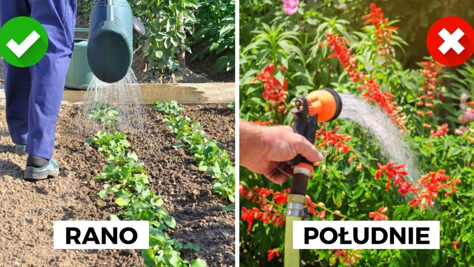 Tak, właściwa pora dnia jest niezwykle istotna. Podlewaj rośliny rano bądź wieczorem. Lepsze będą wcześniejsze godziny, gdyż wówczas woda szybciej wsiąka oraz wolniej paruje (słońce nie świeci jeszcze mocno). Wieczorne nawadnianie też nie jest niewłaściwe, ale wtedy ziemia już tak prędko nie wchłonie wody i wzrasta ryzyko rozwoju chorób grzybowych.