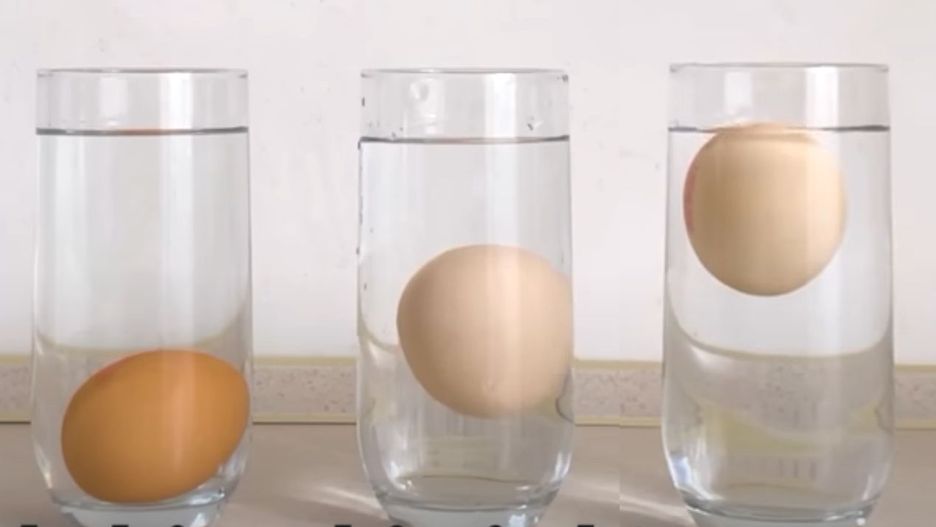 Do naczynia nalej zimną wodę. Następnie włóż do niego jajko i obserwuj, jak się zachowuje.