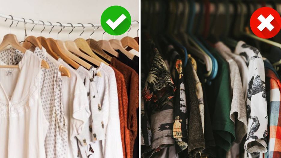 Nie wieszaj po 2,3 czy 10 sztuk ubrań na jednym wieszaku. To sprawia, że nie wiesz co tak naprawdę masz w swojej szafie, a gdy czegoś nie widzimy to zapominamy o tym i przestajemy w tym chodzić. Porozdzielaj ubrania na wieszaki - tutaj musisz ograniczyć jednak ilość ubrań w szafie, ponieważ więcej ubrań = więcej wieszaków, a to wiąże się z dodatkowymi wydatkami i ograniczeniem miejsca w szafie.