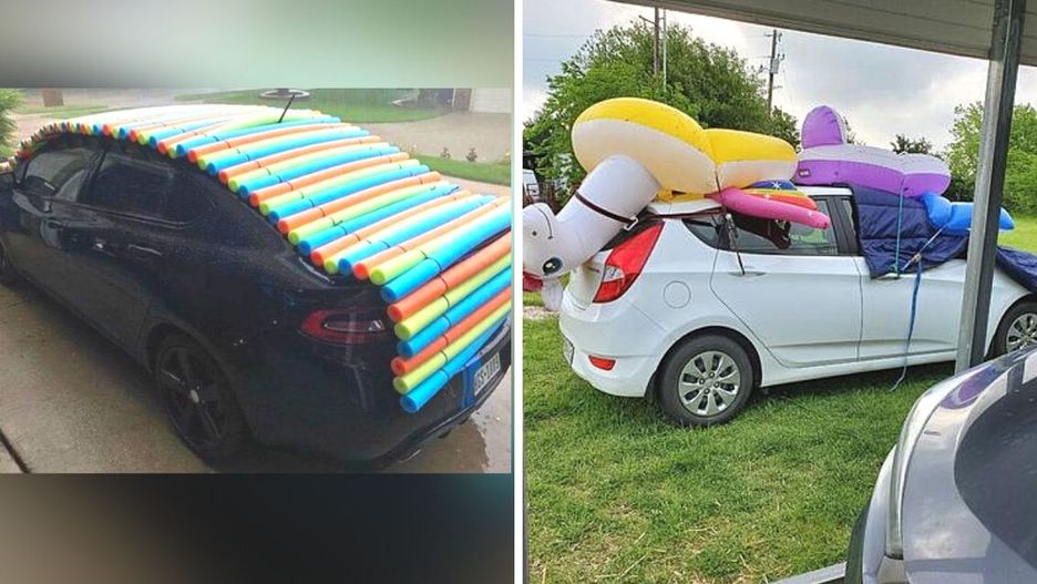 Coraz więcej osób decyduje się zabezpieczyć samochód kołdrą, kocami lub dmuchanymi materacami. Trzeba przyznać, że zwłaszcza ten ostatni sposób się dobrze sprawdza, choć samochód wygląda w tym przypadku może trochę groteskowo. Ale lepszy groteskowy wygląd od zniszczonego lakieru, prawda?