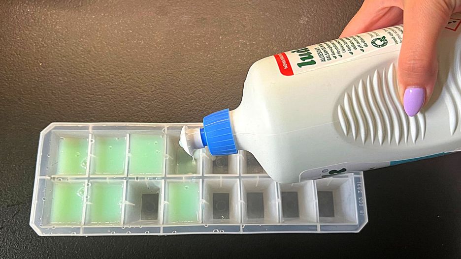 Wystarczy wziąć sylikonową foremkę do lodu i nalać do niej płyn do mycia naczyń.