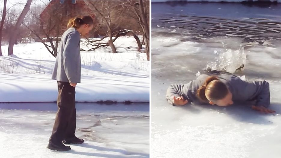 Pewien mężczyzna postanowił zaprezentować co powinno się robić gdy wpadniemy do zamarzniętego jeziora