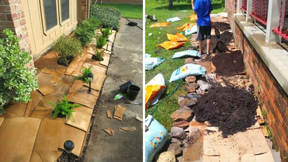 #1 Wykorzystaj kartony jako barierę dla chwastów