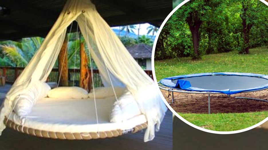 Ludzie przerabiają swoje stare trampoliny na bajkowe huśtawki ogrodowe