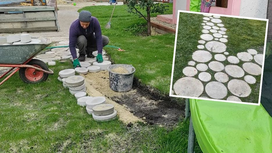 Z betonu i starych doniczek zrobił nowoczesną ścieżkę w ogrodzie. Wygląda jak droga do gwiazd