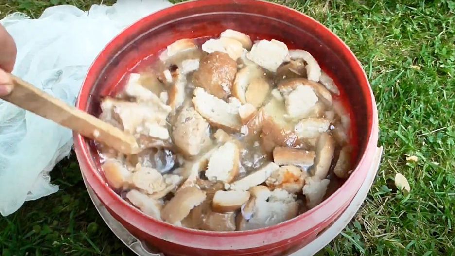Najpierw włóż chleb do wiadra i zalej przegotowaną wodą. Następnie przykryj je szczelnie szmatką i zostaw na tydzień w ciepłym miejscu. Po tym czasie przemieszaj zawiesinę tak, by rozpadły się wszystkie kawałki pieczywa. Gdy to nastąpi, przelej nawóz przez sitko i wlej do konewki.