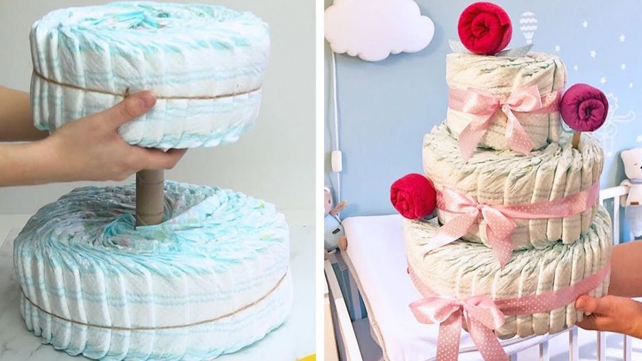 Zamiast kwiatów tort z pieluch dla świeżo upieczonej mamy! Uroczy prezent z okazji narodzin DIY