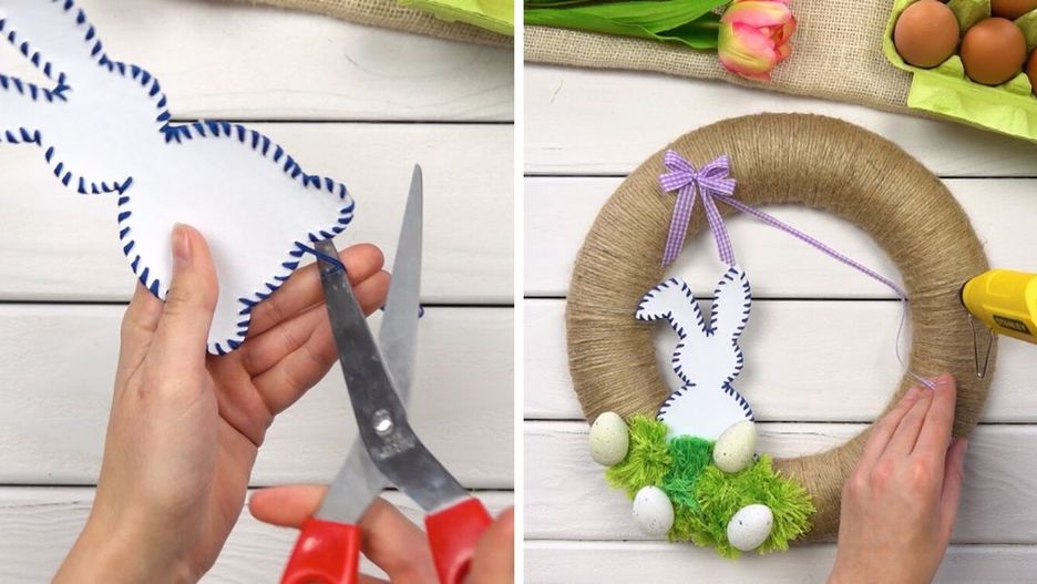6. Teraz przyklej do stroika zajączka