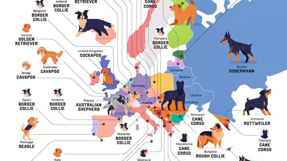 Oto ulubieńcy Europy, na podstawie miesięcznej ilości wyszukiwań danej rasy w danym kraju w Google.