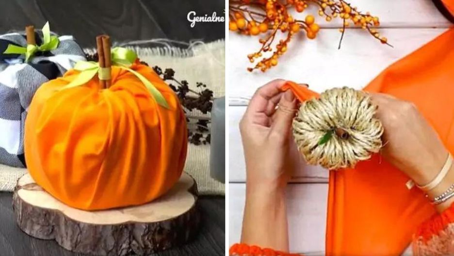 Rolki papieru toaletowego możesz przeistoczyć w dynie. Wystarczy, że owiniesz je kawałkami materiału. Natomiast do zrobienia ogonka idealnie nadają się laski cynamonu.