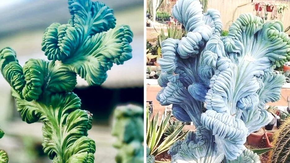 Kaktus z gatunku Myrtillocactus geometrizans (odmiana cristata) zachwyci każdego miłośnika sukulentów. Przypomina niebiesko-zielone grzebienie fal, które tworzą się na oceanie. Można odnieść wrażenie, że jest nieustannie targany przez delikatne powiewy wiatru. Ten sukulent przypomina także fikuśny pióropusz. ;)