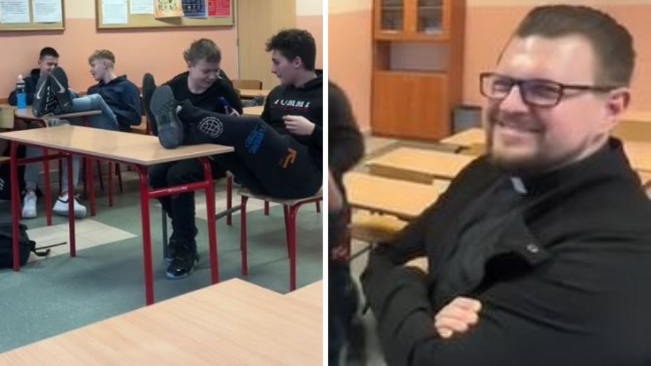 Ksiądz Wojciech Sobieszek prowadzi na TikToku konto @Posłuchajsobie. Jego filmiki są kojarzone głównie, z tym że duchowny ma do siebie niesamowity dystans. W realnym życiu jego postawa jest dokładnie taka sama, przez co ma poparcie wśród młodzieży, która chętnie uczęszcza na jego lekcje. Ostatnio wrzucił pewne nagranie, które stało się viralem na mediach społecznościowych. Miało ono na celu w śmieszny sposób pokazać to, co dzieje się w polskich szkołach pod koniec każdego semestru.