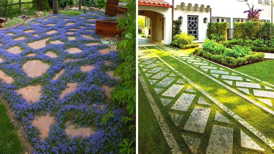 Kostka brukowa pokryta kwiatami i zielenią. 15 podwórek, które wyglądają cudownie